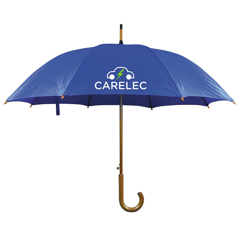 Ce parapluie publicitaire MALWOOD 8 pans en polyester, à ouverture automatique, est composé de baleines en métal ainsi que d'un manche, embouts et poignée en bois, offre un rendu haut de gamme.